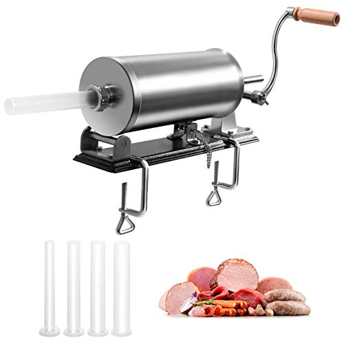 GOPLUS Korvstoppare av rostfritt stål, korvstoppningsmaskin, manuell, korvpress med 4 olika fyllningsrör, korvspruta med fästklämma, lätt att använda och lätt att rengöra (3,6 l)