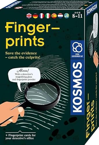 KOSMOS Fingerabdrücke, Detektiv-Experimente, Spurensicherung, Täter überführen, Experimentierset für Kinder ab 8 Jahre, Mitbringexperiment, Geburtstagsgeschenk, (DE, EN, FR, IT, ES, NL), multilingual