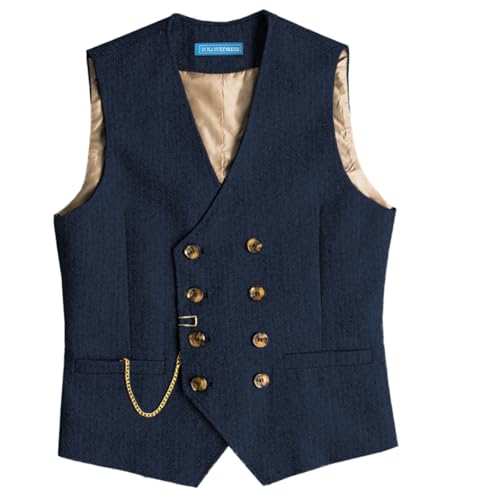Solovedress herr vintage ull kostymväst normal passform väst kostym väst för bröllop brudgummar, marinblå, XL
