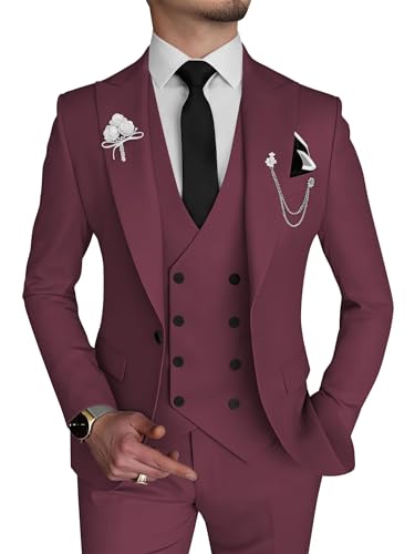 Wangyue 3-delad kostym med smal passform, dubbelknäppt formell kostym för män, bröllop, bal, middag, fest, anpassningsbar, M