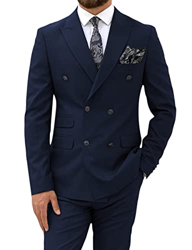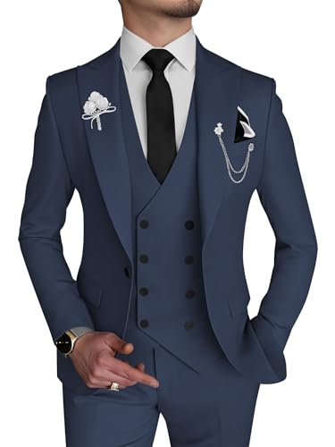 Wangyue 3-delad kostym med smal passform, dubbelknäppt formell kostym för män, bröllop, bal, middag, fest, anpassningsbar, marinblå, S