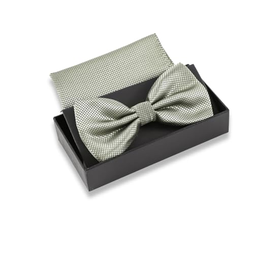 Flugssalviagrön med bröstnäsduk för herrset - Kostym herrfluga till bröllop - Justerbar fluga i grönt