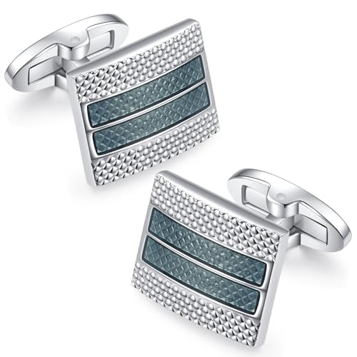 HONEY BEAR Manschettknappar rektangel för män skjorta kostym tillbehör dekoration bröllop affärsgåvor, blå med silver, 1.8*1.4cm, Koppar, Ingen ädelsten