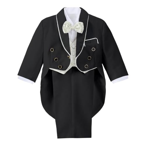 Lito Angels Bebisar Pojkar Smoking Bröllop Kostym & Blazers, 5 Stycken Formell Outfit Set med Guld Jacquard Väst, Ålder 12-18 månader, Svart