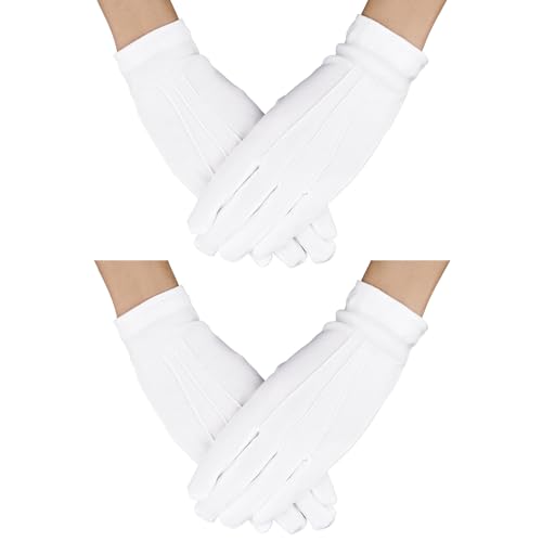 Lusofie 2 par sydda vita handskar män nylon uniform handskar kostym handskar för bröllop servering parad formell vakt polis formell smoking smycken inspektion, Vitt, en storlek
