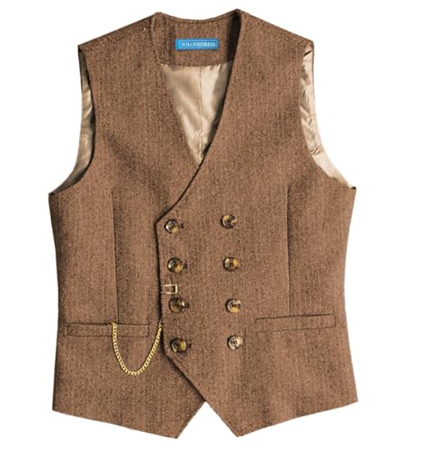Solovedress herr vintage ull kostymväst normal passform väst kostym väst för bröllop brudgummar, BRUN, 3XL