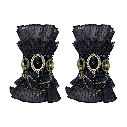 Aabellay Gotiskt svart spetsarmband med fingerring steampunk vampyr armband ring viktoriansk kostym fest vintage bröllop bal festival handkedja smycken för kvinnor flickor 1 par – S466, Svart, M
