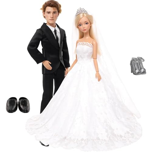 Miunana Dockor, formell kostym, brudklänning, kläder, bröllop, dockkläder, brudklänning med brudslöja, skor för 30 cm dockor