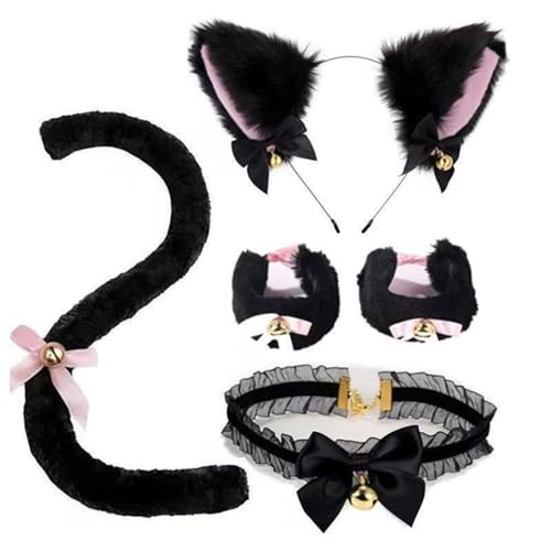 Galenecx 5 delar Cat Kostym Set, Cosplay Cat Kostym Set, Öron Katt Huvudband, Plysch Klok, Choker Spets, Plysch Katt Svans, för Födelsedagsfest, Halloween