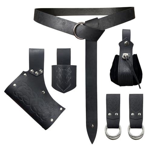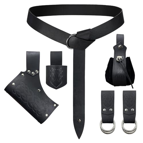 EpicCos 6 st renässansbälte kostym tillbehör påse kjol svärd groda viking horn bälte hölster, Svart A, Small, stIL A