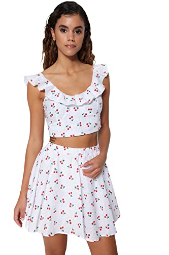 Trendyol Kvinnors mönstrade volanger detaljerad nedre topp kostym kjol set, vit, 38