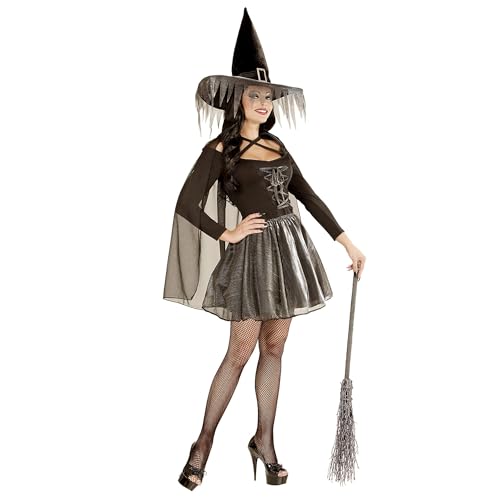 Widmann – kostym häxa, topp, kjol, kappa och hatt, halloween, temafest, karneval