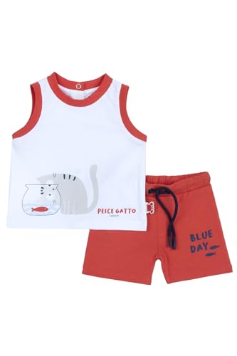 Chicco Kostym i bomull: linne och shorts träningsoverall pojke 0–24, Vit och röd, 3 månader