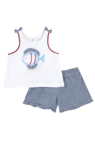 Chicco Kostym i bomull: linne och shorts, Vit och blå, 12 månader
