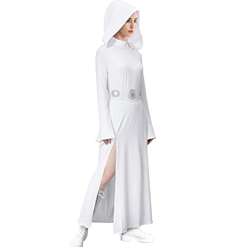 LIKUNGOU Leia kostym för kvinnor, vit klänning, rock med huva med bälte, halloween, cosplay, outfit för fans (liten)