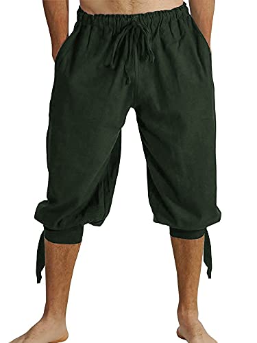 Runcati Korta byxor, herr, plyschbyxor med snörning viking, sommarbyxor, pirat, medeltida kostym, fritid, strand, shorts, Grön, L