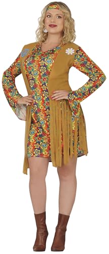 FIESTAS GUIRCA Hippie kostym för kvinnor - Flower Power 70-talet set - 60-talsdräkt dam, storlek XL 46–48
