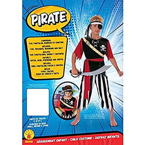 Rubies - Pirat nybörjardräkt 8–10 år gammal - kostym med topp, byxor, pannband och rött bälte - flerfärgad - för karneval, jul, födelsedag, fester och halloween.