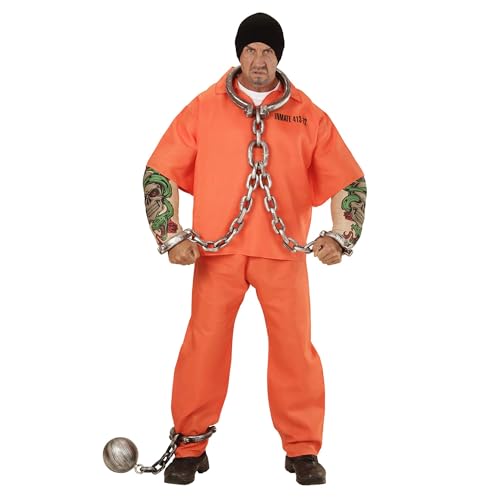 WIDMANN 00643 - vuxen kostym tatuerad fånge, topp med muskelarmar och byxor, orange