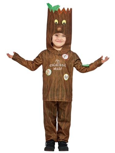 Smiffys Julia Donaldson Stickman kostym för barn, topp, byxor och karaktär huva, brun, officiellt licensierad med bladdetalj och bokcitat, perfekt för rollspel och maskeradkläder