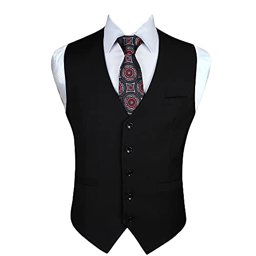 Enlision formell fest bröllopsväst enfärgad kostym väst västar för män XS-4XL, Svart, 4XL