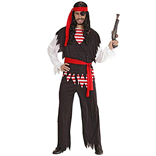 Widmann – kostym pirat, skjorta, väst, byxor, bälte och huvudduk, sjörövare, karneval, temafest