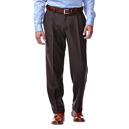 Haggar Gabardine-kostymbyxor för herr, klassisk passform, plisseringar fram, dolt expanderbart midjeband, Ek, 38W / 30L