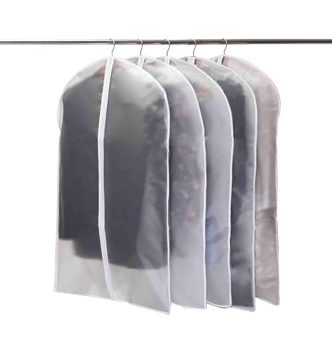 Klädpåse kostym 5 stycken högkvalitativa klädpåsar, transparent 60 x 140 cm andningsbart tyg, för kostymer klänningar rockar jackor skjortor aftonklänningar kostymväska förvaring klädfodral