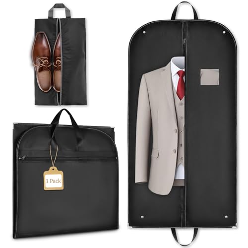 Ecooe Klädväska, svart klädskydd, förvaringsväskor, kostymväska med 1 skopåse (110 × 60 cm)