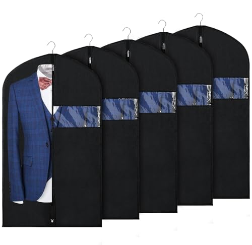 Syeeiex 40-tums kostymväska kostymöverdrag klädväskor (set med 5) kostymväska för män, kostymväskor för garderobsförvaring med klart fönster för män, kostymer, rockar, svart