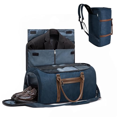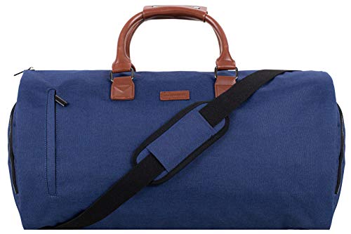 BOLOSTA 2-i-1 konvertibelt plagg duffelväskor för resor, vikbar handbagage plaggväska för kvinnor med skofack läder kostymväska för hängande kläder långa klänningar, blå, konvertibel tygväska