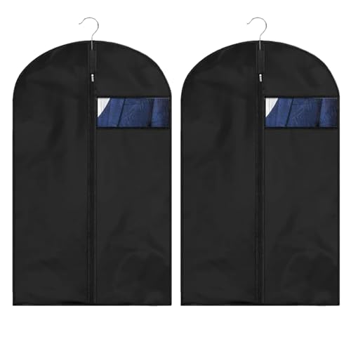 Klädpåse kostym skyddshölje, 2 st klädpåse för förvaring, kostymväska, män, andningsbart tyg, kort klädpåse med klart fönster för kostym, kappa, jacka, skjortor