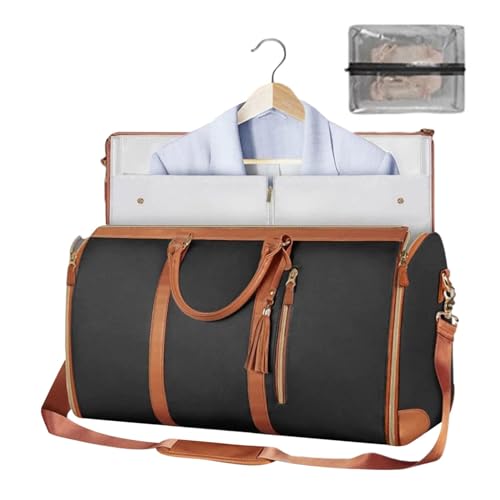 Outplea 34L plaggväskor män kvinnor, konvertibla plagg duffelväskor, kostymväska med axelrem, 2-i-1 hängande resväska resväska för helg övernattningsflygplan, svart