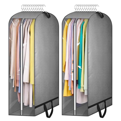 60 x 100 cm klädpåse, lång klädpåse, 2 st klädfodral med bärhandtag högkvalitativt klädskydd, klädskydd med dragkedja för kostym och klänning, andningsbar kostymväska för resor