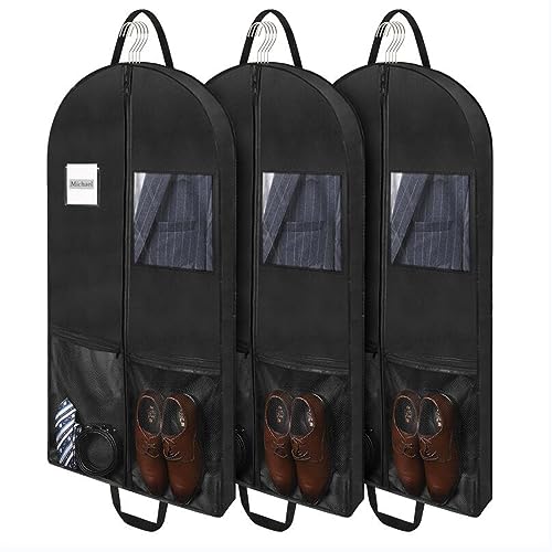 Belinlen 3-pack 109 cm hängande plaggväskor för resor kostymväska med 10 cm kil stor andningsbar plaggväska 2 nätfickor 2 bärhandtag (svart)