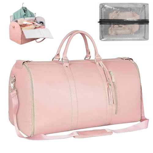 seyfocnia Konvertibel Handbagage Plaggväska för Kvinnor, Läderplaggväska för Resor med Skopåse 2 i 1 Hängande Resväska Kostymväska för Kvinnor, A1-rosa, Samtida