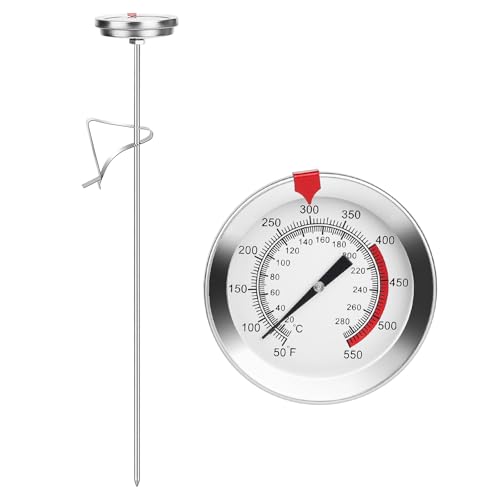 Lantelme Set 500 °C grill och 110 °C kött stekning rostfritt stål termometer med 30 cm och 12 cm sond | För grillning pizzaugn, analog och bimetall, grilltermometer instickningstermometer
