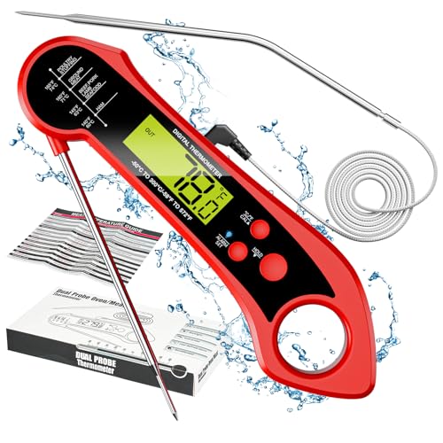 NEUTYPECHIC Kökstermometer med dubbla hopfällbara sonder, matlagningstermometer 3s läsning, kötttermometer med LCD-skärm, digital termometer för matlagning, kött, BBQ, mjölk
