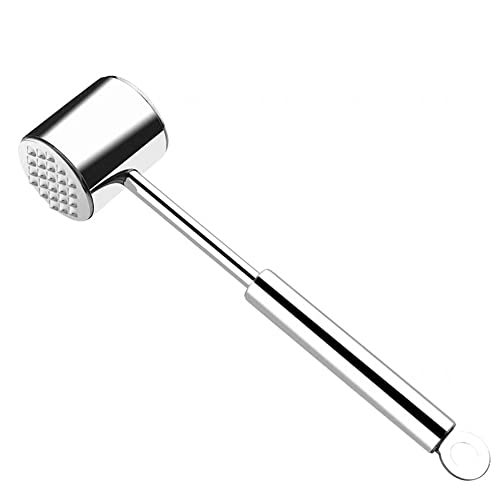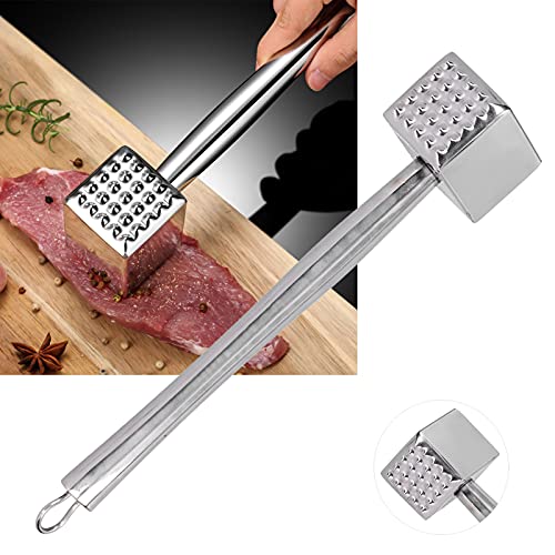 Bixury Kötthammare i Metall,Silver Professionell Kötthammare 27cm Högglans Dubbelsidig Kötthammare i Rostfritt stål Steak Hammer med Halkfritt Handtag Loose Meat Hammer för Biff Kyckling Fisk Gris