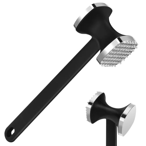 Joeji's Kötthammare i metall, stark slitstark kötthammare, köttmos perfekt till biff, köttfärs, fågel, fisk, kött, bekvämt grepp svart kötthammare