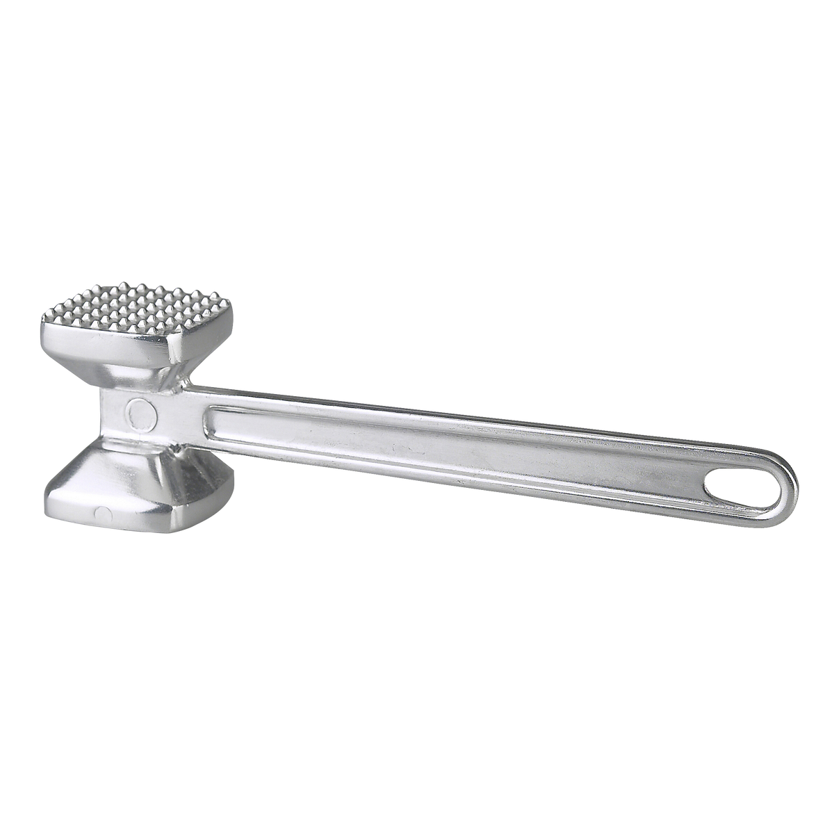 HENDI Dubbelsidig kötthammare för krossning av kött med hängande ögla, långt handtag, köttmörare, köttvisp 255 x 65 x (H) 70 mm, aluminium svart