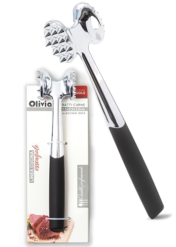 IPEA Kötthammare i rostfritt stål med bekvämt gummigrepp – 22,5 cm – dubbelhäftande köttslag för att krossa kött, hamburgare, kotletter, biffar, kyckling – non-stick kökshammare