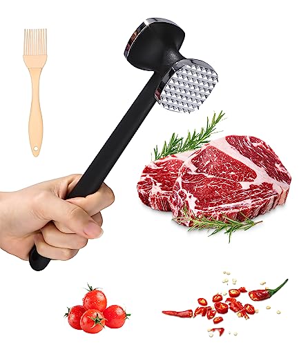 Baxcdyswe Köttknackare, rivknackare, rostfri dubbelsidig kötthammare med halkfritt handtag, köttplätering diskmaskinssäker för skinnor, biff, nötkött, kyckling, gris