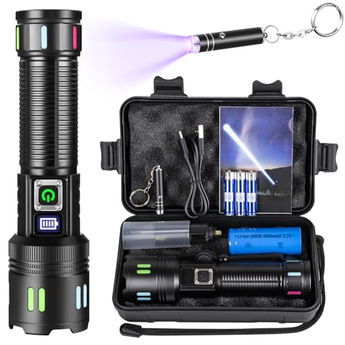 LEKIA Ficklampor LED-uppladdningsbar USB-C, superljus 50 000 lumen LED-ficklampa, batteridriven kraftfull ficklampa för nödcamping, zoombar, vattentät, 5 lägen (5 000 mAh batteri)