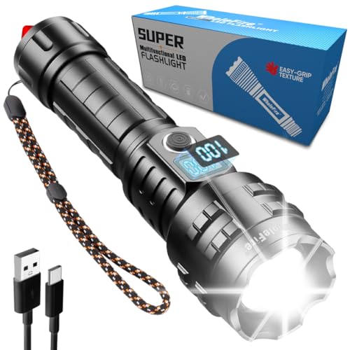 Super Ljusstark LED-Ficklampa, Uppladdningsbar LED-Ficklampa, Ljusstark 1000000 Lumen,Taktisk Ficklampa Batteridriven, Kraftfull Ficklampa Usb C Uppladdningsbar FöR Camping, Vandring, NöDfall, GåVa