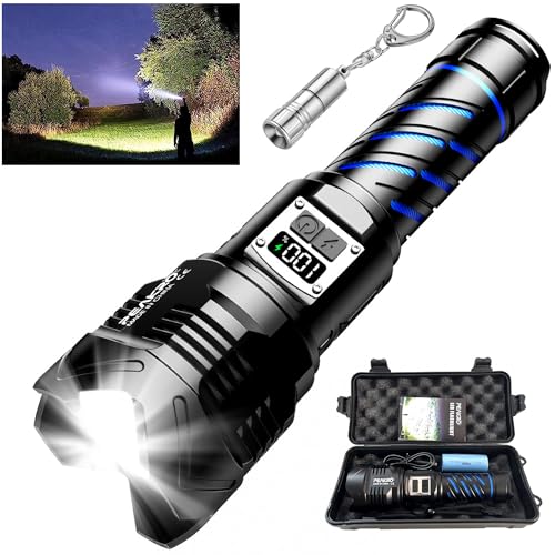 MAYTHANK LED-ficklampa superljus uppladdningsbar stor kapacitet 10 000 ma långvarig, kraftfull högdriven spotlight ficklampa lång räckvidd 800 meter, handhållen söklampa vattentät (ingen sidolykta)