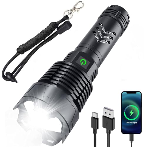 Super Ljusstark LED-Ficklampa, Uppladdningsbar LED-Ficklampa, Ljusstark 1000000 Lumen, Taktisk Ficklampa Batteridriven, XHQ99.2 Kraftfull Ficklampa USB C Uppladdningsbar FöR Camping, Vandring, NöDfall