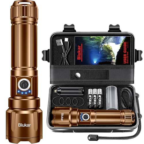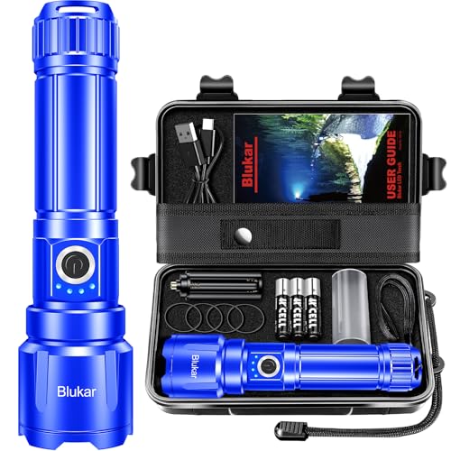 Blukar LED Ficklampa, Superhöga Ficklampor - Justerbar Fokus, 5000 mAh, IP67 Vattentät, Kraftfull Långvarig Handhållen Ficklampa för Strömavbrott, Camping, Vandring, Nödsituationer etc.