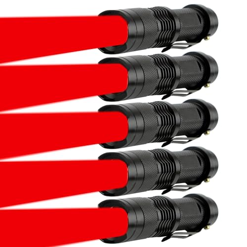 MVIOCS Rött ljus ficklampa, LED rött ljus, röda LED-ficklampor, kraftfull röd ljusficklampa med klämma för jakt, astronomi, nattobservation och utomhusaktiviteter (5 delar)