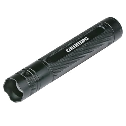 Grundig LED-ficklampa – kompakt ficklampa i aluminium – körs med 2 AA-batterier – för inomhus- och utomhusbruk – lätt och kraftfull – användbar hemma eller på språng